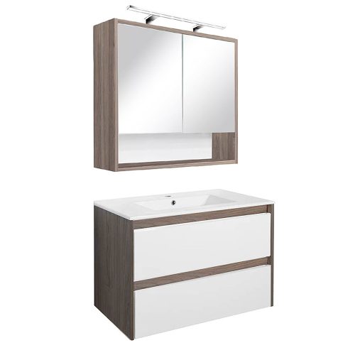 A csomag része a bútorra tökéletesen illeszkedő, fehér színű, mélymedencés kerámia mosdóis, amely egy csaptelep számára kialakított hellyel rendelkezik. így nem kell külön keresni hozzá megfelelő mosdót. A csomag nem tartalmazza a lámpát, a csaptelepet és a leeresztőt!