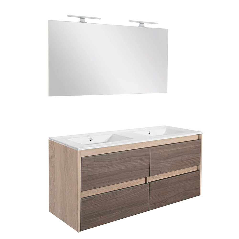 Leziter Porto Prime 120 komplett sonoma tölgy–rauna szil – alsó szekrény mosdóval és CUBE tükörrel