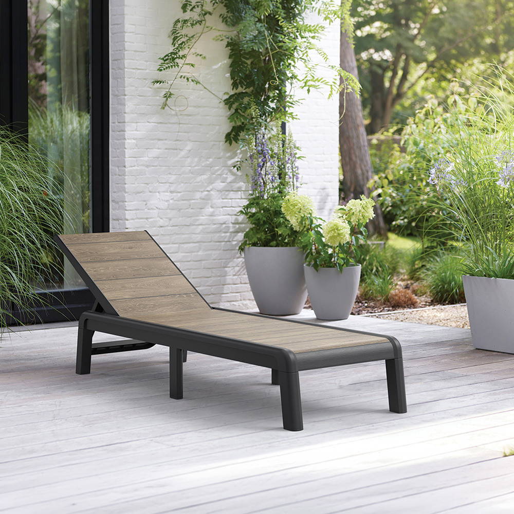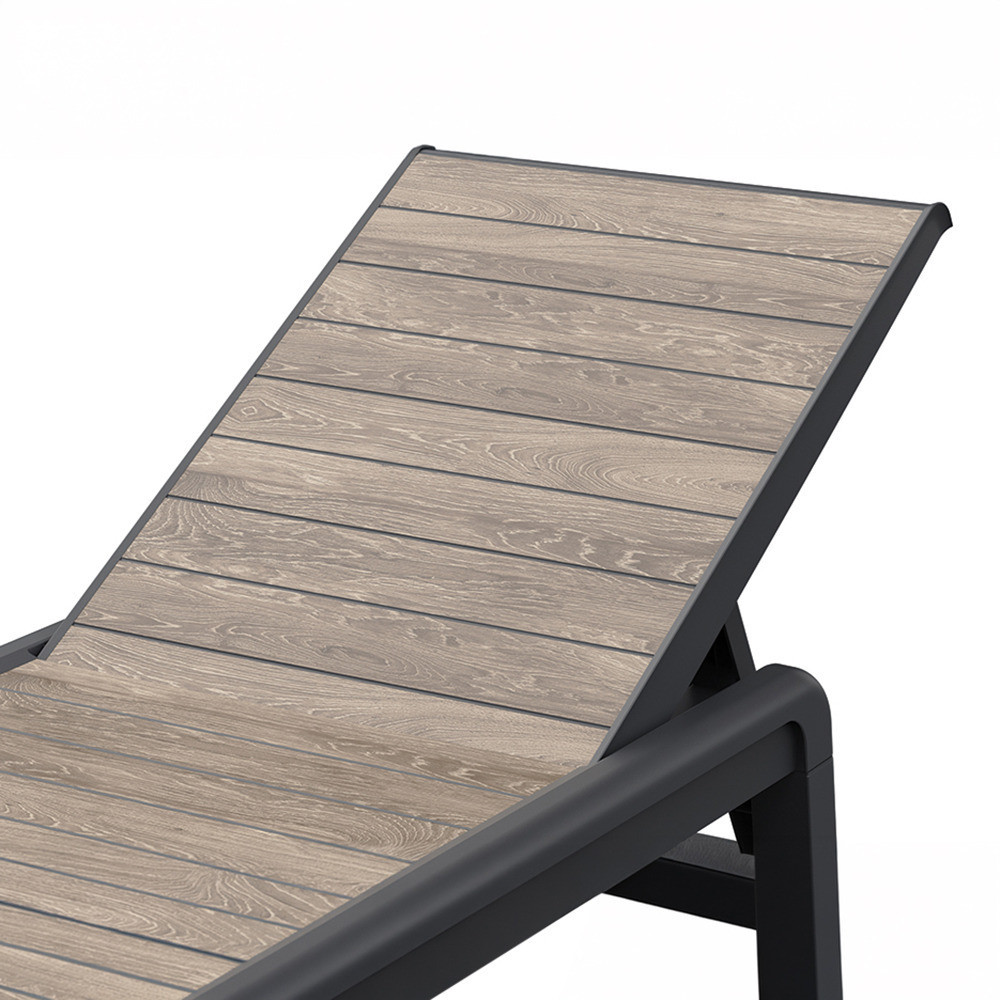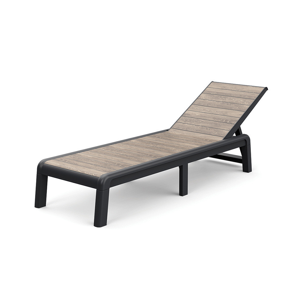 Porto műanyag kerti napozóágy párna nélkül kőrisfa-grafit