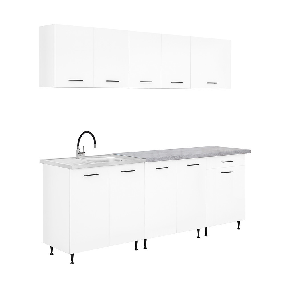 Fehér–Chromix tölgy modern konyhabútor kisebb és közepes méretű konyhákba