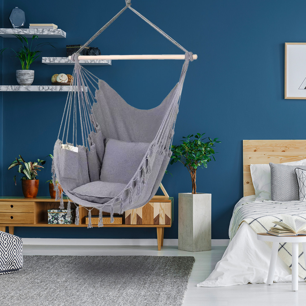 Legyen szó kültéri relaxációról vagy beltéri kényelemről, a Puerto függőfotel tökéletes választás. Könnyen függeszthető a kert vagy udvar faágaira, és ugyanolyan egyszerűen integrálható a verandára, balkonra vagy a nappaliba.