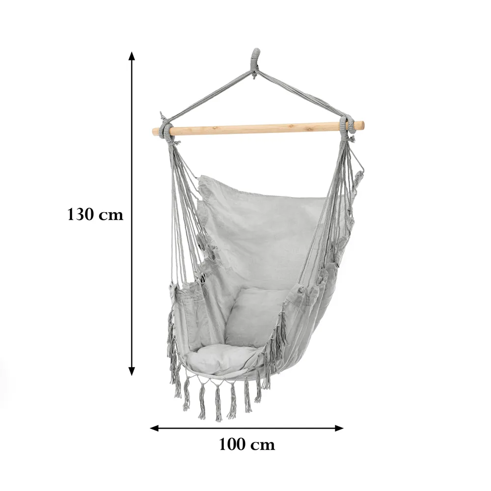 A Puerto függőfotel kiváló választás, ha az otthoni kikapcsolódásra vagy egy stílusos kültéri kiegészítőre vágysz. A 330gsm poliészter-pamut anyagú párnákkal, minőségi tömőanyaggal, és díszes bojttal ellátva a Puerto függőszék nemcsak esztétikus, hanem rendkívül kényelmes is.