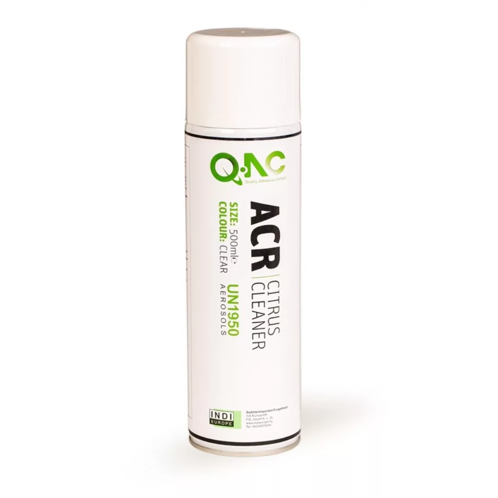 A QAC ACR biológiailag lebomló, citrus illatú, oldószeres tisztító, zsírtalanító és ragasztó eltávolító spray.