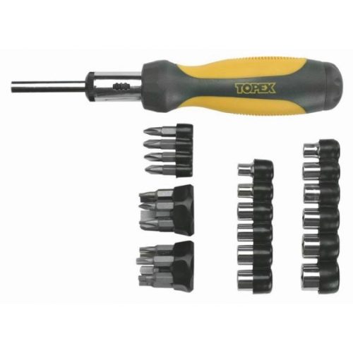 A TOPEX dugókulcs és csavarhúzó bit készlet 29 elrendezett elemet tartalmaz rendeződobozokkal a bitekhez és a dugókulcsokhoz. Mindegyik elem kiváló minőségű, a szerszámnak hosszú élettartamot biztosító króm-vanádium acélból készült. A készletben többek között metrikus dugókulcsok, csavarhúzó bitek, valamint a munkavégzés kényelmét biztosító, csúszásmentes bevonattal ellátott műanyag markolatú csavarhúzó nyél található. A készlet széleskörű felhasználásra találhat mindenféle apróbb szerelési, gép- és autójavítási és egyéb munkában minden ezermester otthonában vagy garázsában. A TOPEX márka ezermestereknek készül.
