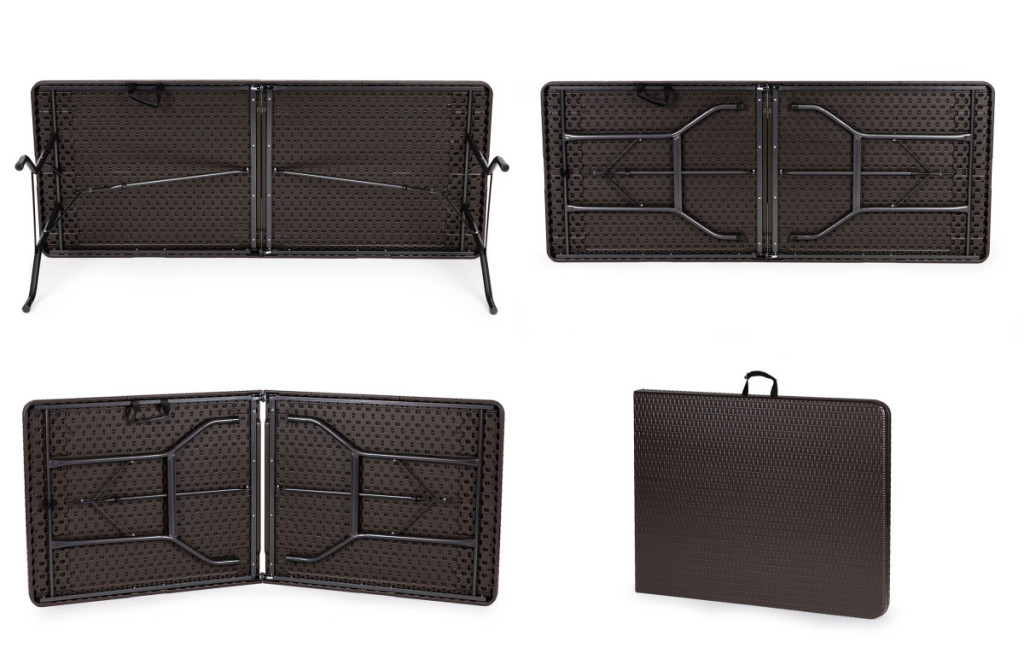 • Az asztal egy praktikus fogantyúval gyorsan összecsukható bőröndméretűre – így szállítása és tárolása sem okoz gondot.