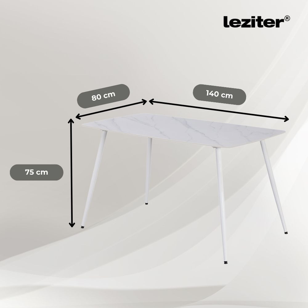 A Renton étkezőgarnitúra alapja a modern, mégis természetes hatású Leziter Bora 140 cm-es szögletes étkezőasztal, amely egyedülálló technológiával készült szinterezett kőlapjának köszönhetően páratlan tartósságot kínál. A palakő hatású asztallap nemcsak stílusos, de ellenáll a karcolásoknak, hőnek és foltoknak is – így ideális választás egy forgalmas családi étkezőbe vagy konyhába.