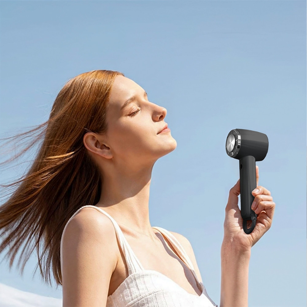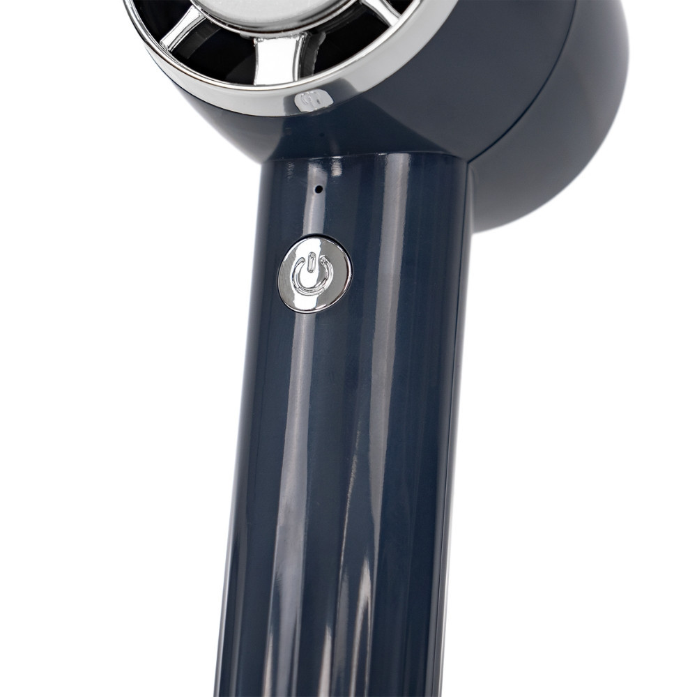 A ventilátor állítható döntési szögének köszönhetően nemcsak kézben használható, hanem stabilan az asztalra is állítható – így írás, munka vagy sminkelés közben is élvezheted a hűsítő hatást.
