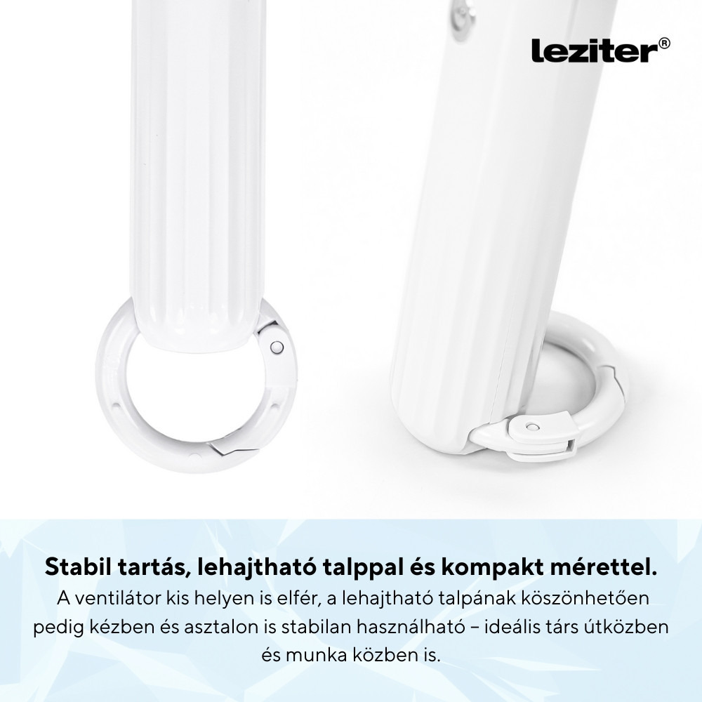 Ismerős az érzés, amikor egy megbeszélés közepén, a buszmegállóban vagy az irodában egyszerűen elfogy a levegő? A Leziter Rico hordozható ventilátor pontosan ezekre a pillanatokra született. A Leziter Rico egy elegáns, kompakt és csendes működésű kézi ventilátor, amely bárhol és bármikor hűsítő fuvallatot biztosít. Mindössze 185 mm magas, pehelykönnyű, így elfér a táskádban, fiókban vagy a kocsid kesztyűtartójában.
