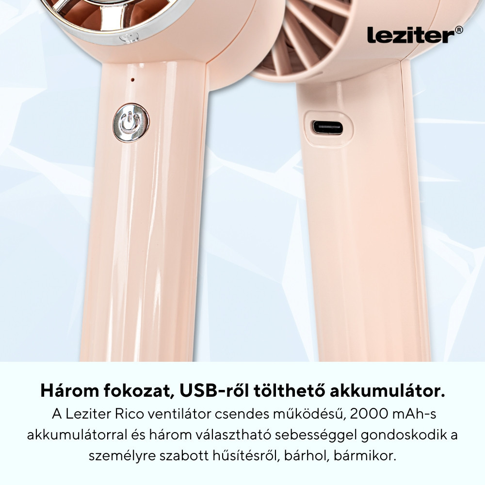 Leziter Rico kézi hordozható USB ventilátor nyári hűsítéshez – bárhol, bármikor