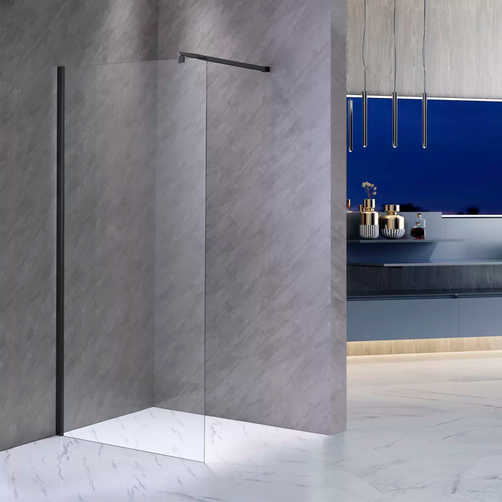 A fekete alumínium profil elegáns megjelenést biztosít, amely jól illeszkedik mind a modern, mind a klasszikus stílusú enteriőrbe. A zuhanyfal zuhanytálca nélkül is használható, közvetlenül a padlóra telepítve, ami ideális megoldás a walk-in, síkba épített zuhanyzók kedvelőinek.