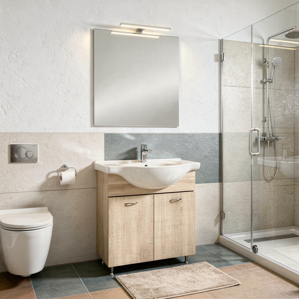 Leziter Ruben Prime 75 komplett fürdőszobabútor CUBE tükörrel – sonoma tölgy