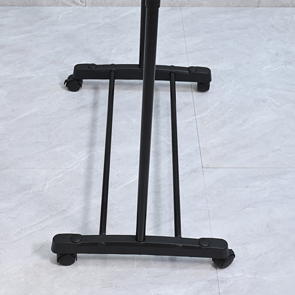 • Könnyű mozgatás: A beépített kerekek segítségével az állvány könnyen mozgatható, így egyszerűen áthelyezhető a szoba egyik pontjáról a másikra, ideális választás hálószobákba, gardróbokba vagy akár vendégszobába.