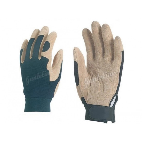 BŐRKESZTYŰ, NATÚR SERTÉS VELÚR/FEKETE PES, TÉPŐZÁR_10 SERTÉS VELÚRBŐR KESZTYŰ: • kifordított sertésbőr: kifelé natúr velúr, befelé szivaccsal párnázott, puha színbőr tenyér, artéria- és körömvédő • rugalmas fekete poliészter kézhát • elasztikus mandzsetta, állítható tépőzáras szegéllyel • MÉRET: 9-es • CSOMAGOLÁS: 120/12 • EU szabvány: EN420, EN388: 3122