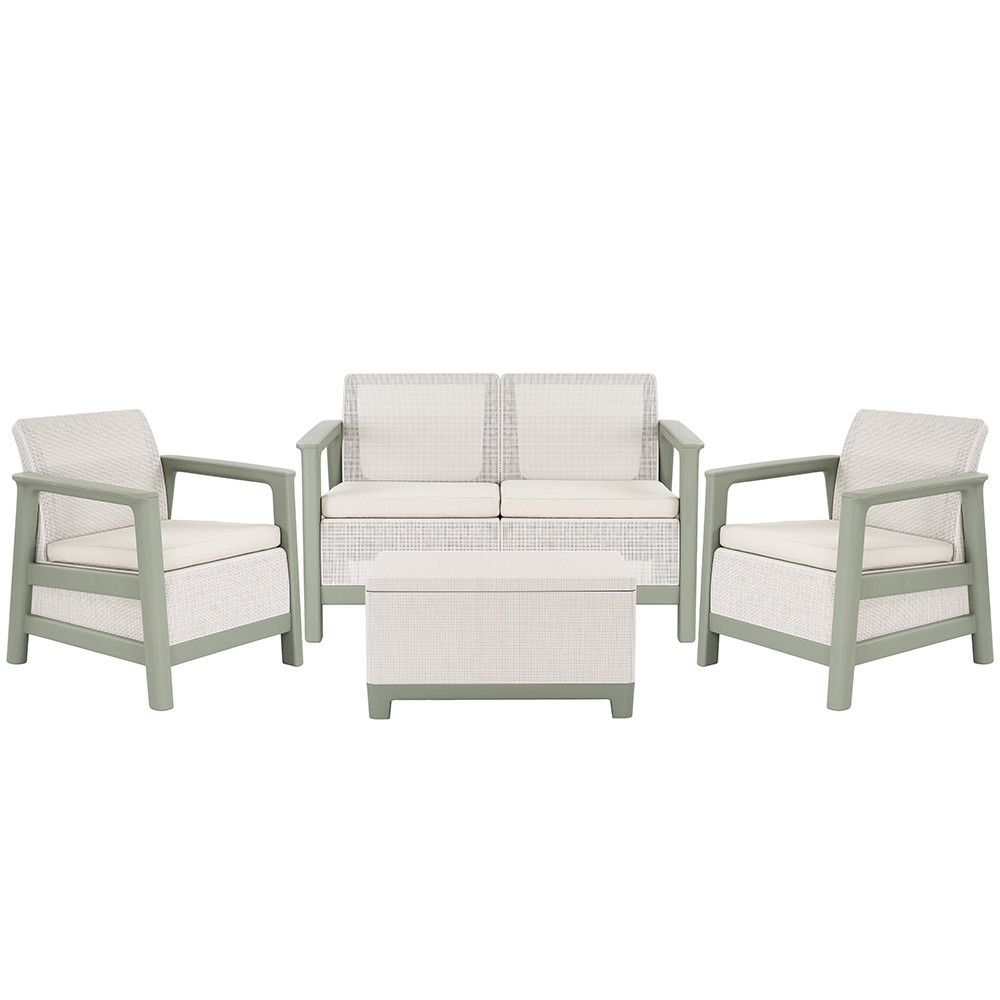 Scandi linea kerti bútor szett jute tárolós asztallal zsálya zöld-homok