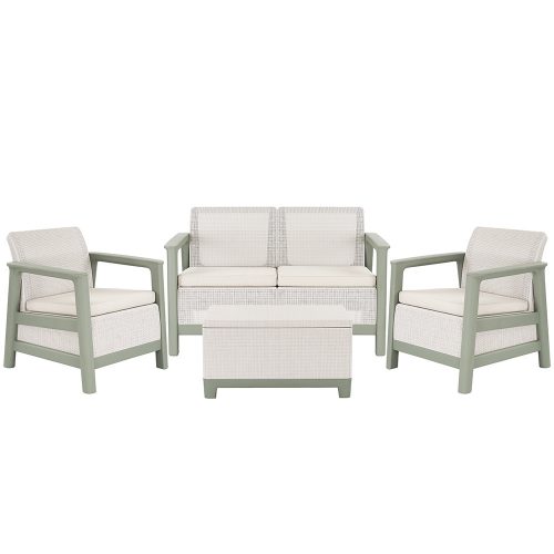 Ideális választás azok számára, akik zsálya zöld-homok kerti bútor szettet keresnek, időjárásálló műanyag kültéri bútort szeretnének, kisebb teraszra vagy erkélyre is elhelyezhető kompakt megoldást választanának, illetve előnyben részesítik a tárolóval ellátott kerti asztalt. Stabil, modern és hosszú távon is kényelmes kültéri ülőgarnitúra.