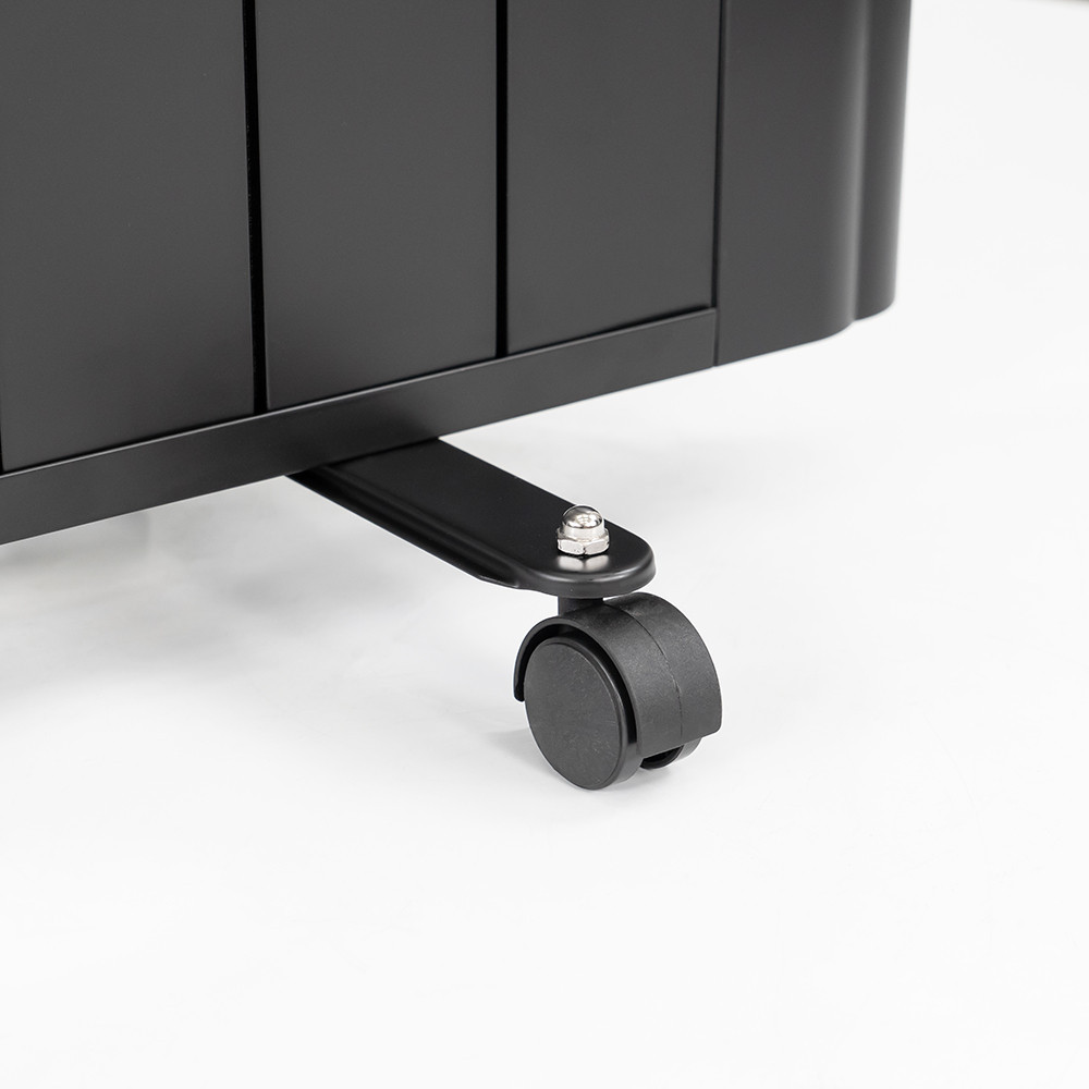 A Leziter Solis elektromos fűtőtest falra szerelve helytakarékos megoldás, míg a lábaknak és görgőknek köszönhetően szabadon állóként is használható. Szükség esetén könnyedén áthelyezhető egyik helyiségből a másikba, mindezt stabilan, biztonságosan, fix pozícióban tartva.
