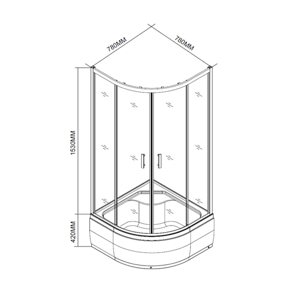 Leziter SDEEP80 Spirit Deep 80x80 cm-es íves zuhanykabin, mélytálcával méretrajz