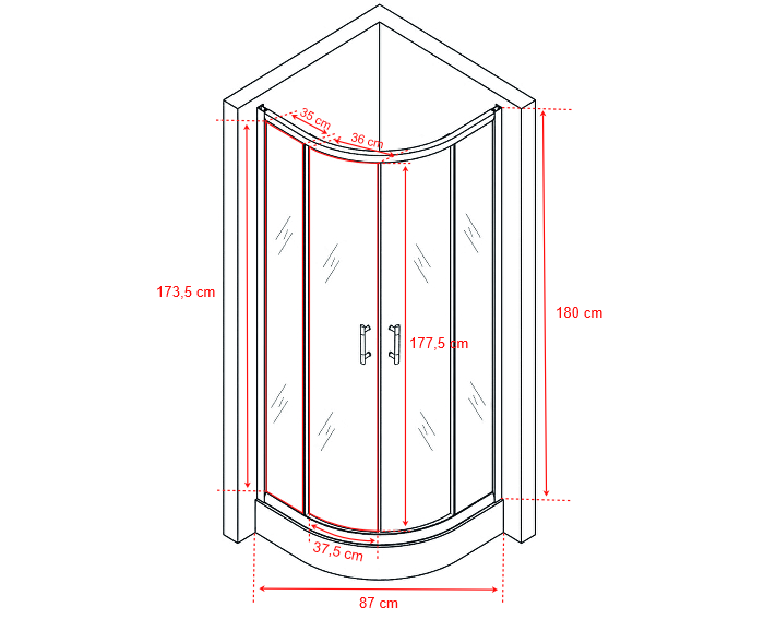 Műanyag vízzáró profilokkal rendelkezik, hogy a víz a kabinon belül maradjon. Az állítható fali profilok segítségével, ha nem teljesen függőleges a fal, akár 15 mm eltérést is korrigálhat. Amennyiben tálca nélkül rendeli, 180 cm-es magassággal, ha pedig szettben erősített akril zuhanytálcával, akkor 194 cm-es magassággal számolhat. 1 év garanica.