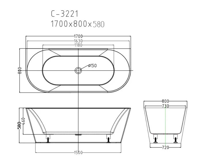 Still szabadon álló fürdőkád 170x80x58 cm