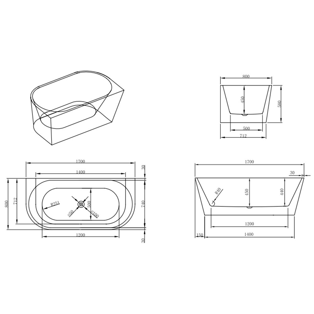 Still szabadon álló fürdőkád 170x80x58 cm fekete