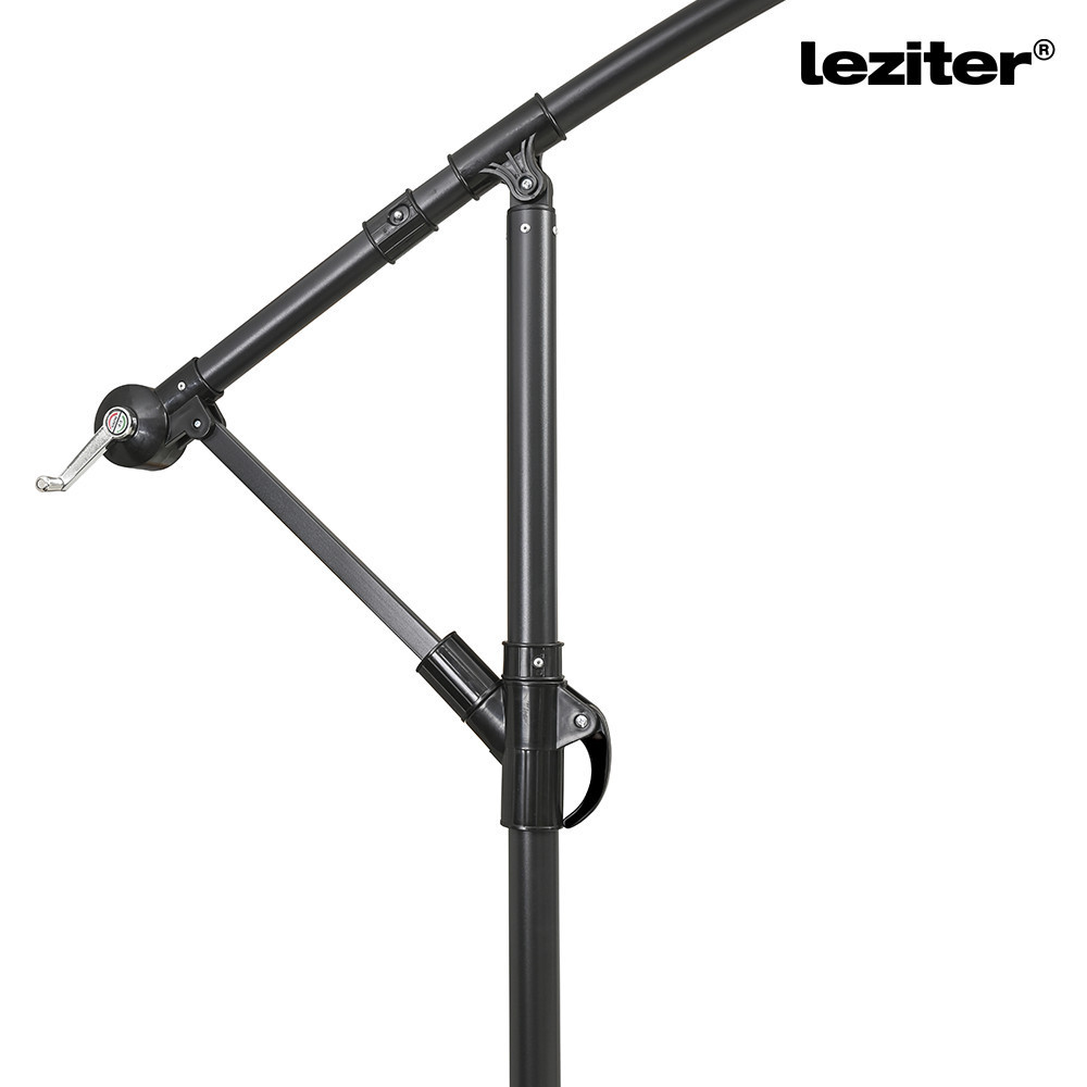 A Leziter Sunny kerti napernyő 300 cm átmérőjű kialakítással rendelkezik, amely egyenletes lefedést biztosít az árnyékolt területen. A kör alakú forma jól használható kertekben, teraszokon vagy kerti bútorok fölött. A ponyva kialakítása a mindennapi kültéri használathoz igazodik, felülete vízlepergető, így a nedvesség nem szívódik fel azonnal. A szürke szín világos, visszafogott megjelenést ad, amely könnyen illeszkedik különböző kültéri környezetekhez.