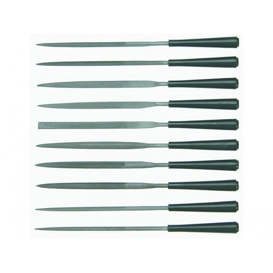 TOPEX tűreszelő készlet, hosszúságuk 140 mm, átmérőjük 3 mm. Fémek precíziós reszelésére szolgál elsősorban. A tíz univerzális a