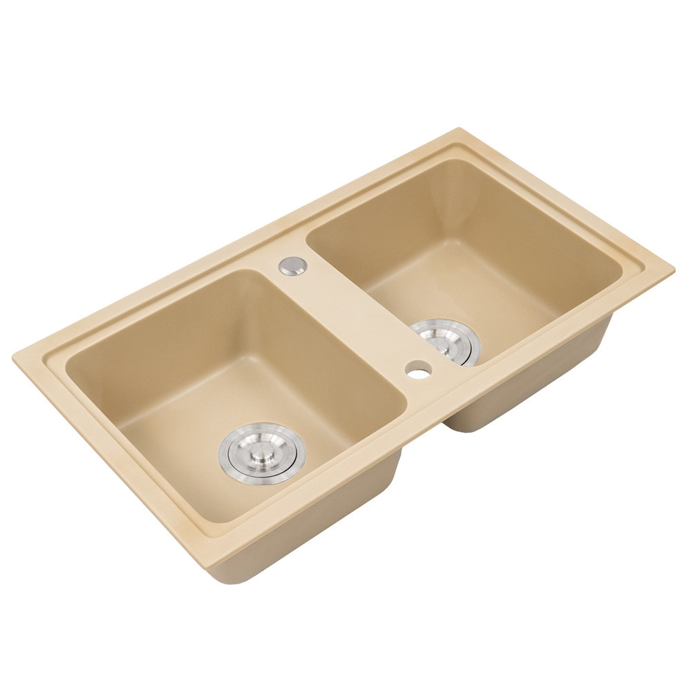 Tia szögletes két medencés gránit mosogató szifonnal bézs
