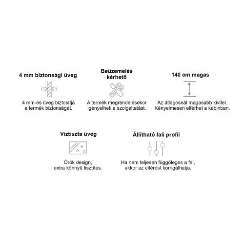 A kádparaván 4 mm vastagságú edzett biztonsági üveggel készül, ami a stabilitást és a hosszú élettartamot biztosítja. Nemcsak a funkcionalitásra, de a stílusra is nagy hangsúlyt fektettek: a paraván üvegfelülete, tiszta, modern vonalai és króm színe elegáns, kifinomult megjelenést ad minden fürdőszobának. Szögletes kialakítása pedig biztonságos tusolást tesz lehetővé.
