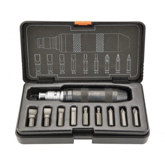 NEO üthető csavarhúzó klt. 10 db?os, ebben 9 db népszerű típusú csavarhúzó bit (lapos, kereszt), valamint üthető csavarhúzó mark