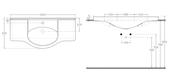 A V105 szárnyas kerámia mosdó számos pozitív tulajdonsággal rendelkezik. Ezek közé tartozik a tökéletesen letisztult körvonalak és az egyenes rakodófelületek. Csaplyukkal és túlfolyókkal rendelkezik. A mosdó 1054x500 mm-es.