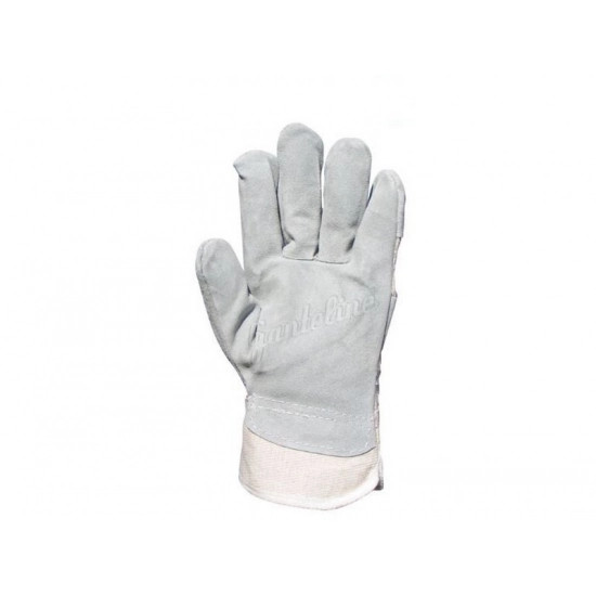 BŐRKESZTYŰ, SZÜRKE MARHAHASÍTÉK/FEHÉR VÁSZON KÉZHÁT_10 SZÜRKE BŐRKESZTYŰ: • szürke marhahasíték • fehér vászon kézhát és mandzsetta • artéria-, köröm- és ökölcsontvédő • pamut tenyérbélés • méret: 10-es • csomagolás: 120/12 • EU szabvány: EN420, EN388: 3122