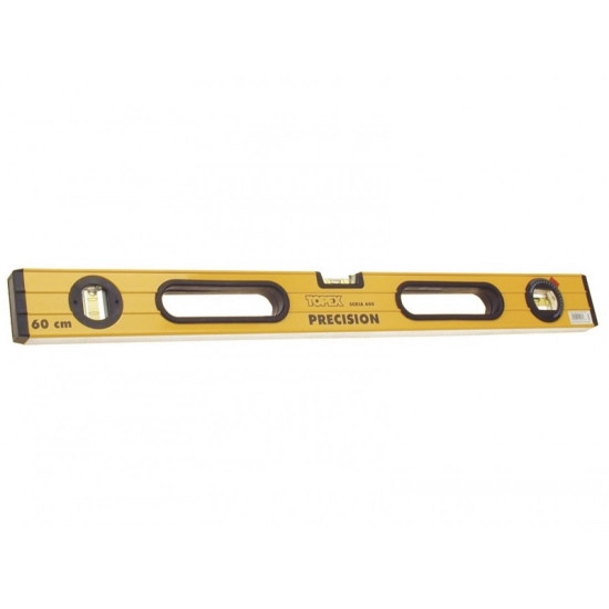 TOPEX 600 tip. alumínium vízszintező, mérési pontossága ±0,5 mm/m. Három libellával felszerelt, melyek közül az egyik a mérést m
