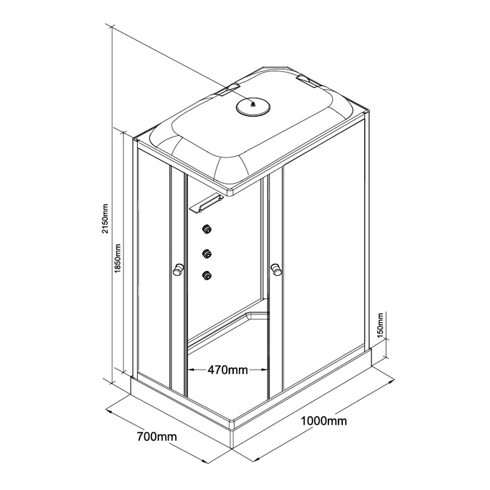 • Magasság: 185 cm (kabin), 215 cm zuhanytálcával együtt