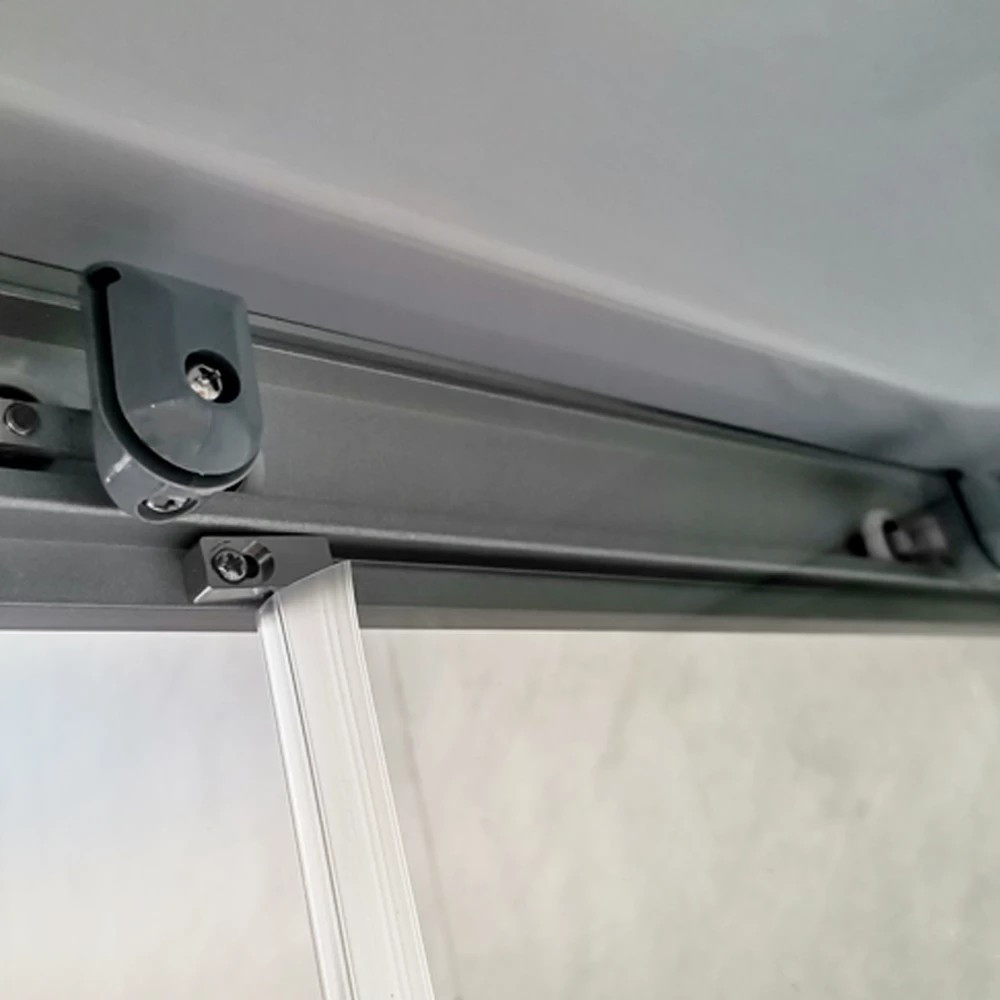 Az 5 mm vastag, edzett víztiszta biztonsági üveg elegáns megjelenésű, miközben ellenáll az ütődéseknek és hőmérséklet-változásoknak. Törés esetén apró, tompa szilánkokra esik szét, így családok számára is biztonságos. Az állítható alumínium fali profil lehetővé teszi a pontos illesztést még enyhén ferde falak esetén is, ezáltal ideális régebbi építésű otthonokba is.