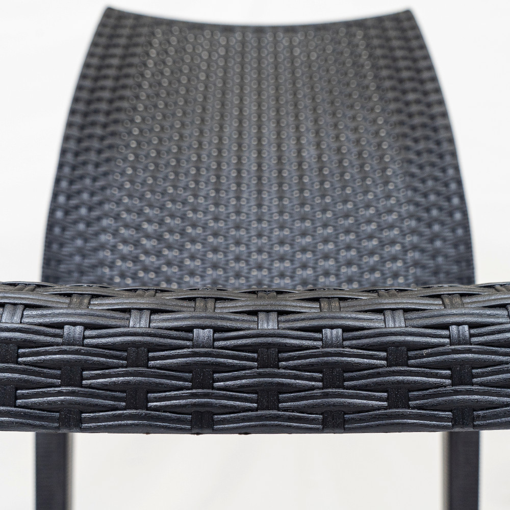 A szék a természetes rattan hatását utánozva műanyagból, polipropilénből készül. Ennek előnye, hogy bútor könnyen mozgatható, elegáns, mégis tartós és stabil, így biztonságosan használhatja. A gyártáshoz használt műanyag nagy részben újrahasznosított, így fenntarthatóbb választás lehet. A műrattan bútor további előnye, hogy vízálló, ellenáll a szélsőséges időjárási viszonyoknak és az UV sugárzásnak és könnyen tisztítható.