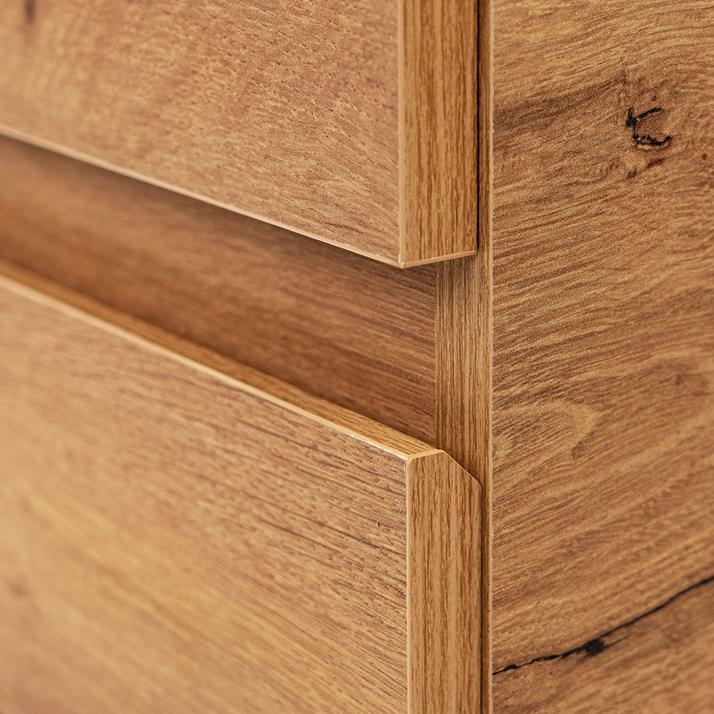 Az tölgy színű korpusz és a tölgy front kombinációja elegáns és időtálló megjelenést kölcsönöz a bútornak.