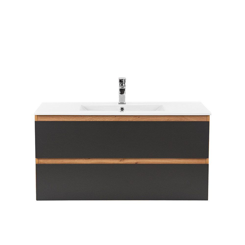 Vario Forte 100 alsó szekrény mosdóval tölgy-antracit - stílusos és modern fürdőszobabútor