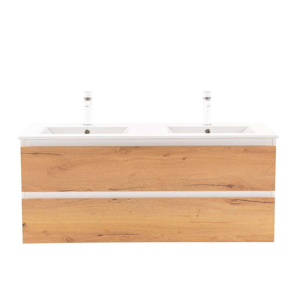 A bútor flat design kerámia mosdóval érkezik, amely kétmedencés kivitelű. Modern, esztétikus és könnyen tisztítható.