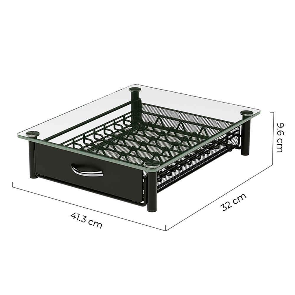 A 4,5 mm vastag edzett üveg minőségi megjelenést kölcsönöz, amelyet a fekete színű acélkeret erősít. Az üveg logónyomat modern, letisztult stílust biztosít, így a kapszulatartó nem csupán praktikus, hanem esztétikus kiegészítője is lesz a kávésaroknak.