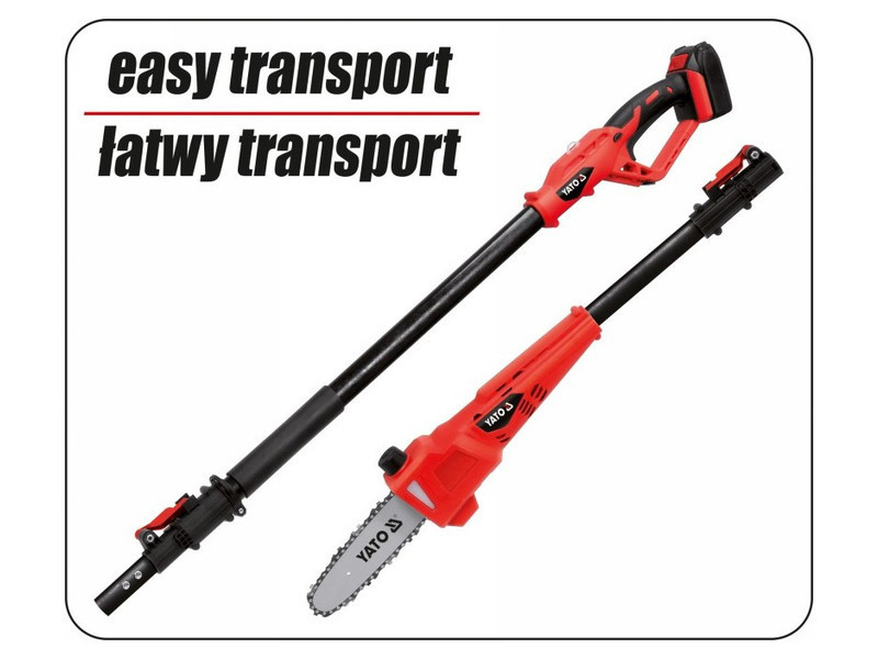 A teleszkópos gémre szerelt láncfűrész lehetővé teszi a fák és magas bokrok létra használata nélküli gondozását. Alkalmas 3-5 méteres magasságban történő vágásra, így az ágak eltávolítása biztonságos és kényelmes. A könnyű és kiegyensúlyozott kialakítás kényelmes munkavégzést és a jelentős vastagságú ágak vágását is biztosítja a lánc ékelődése és visszarúgása nélkül.