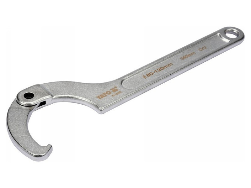 Csuklós, csuklós orrkulcskulcs, kemény CrV króm-vanádium acélból. Matt krómozott felületkezeléssel rendelkezik. Hasított kerek anyákhoz tervezték.