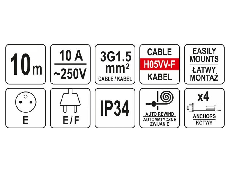 Elektromos hosszabbító kábel automata tekercsre szerelve. Hasznos minden műhelyben és gyártóüzemben.