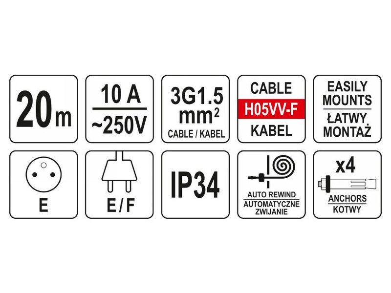 Elektromos hosszabbító kábel automata tekercsre szerelve. Hasznos minden műhelyben és gyártóüzemben.