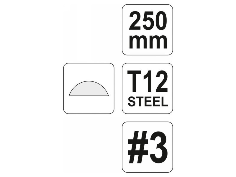 Félkör alakú fémreszelő , kúpos, három vágás, 250 mm, háromkomponensű nyéllel, Yato.