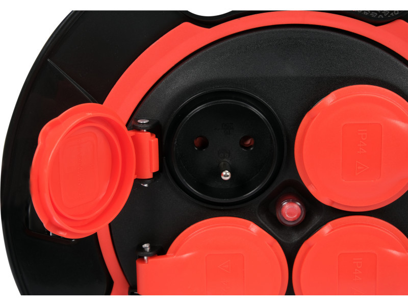 Kiváló minőségű 20 m-estekercses hosszabbító kábel 4 aljzattal. A kábel 3 darab, egyenként 1,5 mm2-es rézvezetékből készült. Az ilyen kábelkeresztmetszet lehetővé teszi, hogy egyszerre 4 készüléket csatlakoztassanak ezekhez a hosszabbítókábelekhez, ami különösen hasznos egy építkezésen, műhelyben vagy gyártóüzemben. A vezetékeket H05RR-F természetes gumiszigetelés borítja, amelyet a mechanikai sérülésekkel, a légköri tényezőkkel és a vegyi anyagokkal (hűtő- és kenőolajok, benzin, illetve etil- és metil-alkoholok ) szembeni nagyfokú ellenállás jellemez. Ez a szigetelés 300V / 500V névleges feszültséget biztosít.