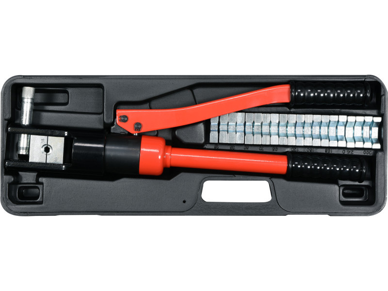 Hidraulikus hengerrel ellátott kézi prés, amelyet elektromos kábelek csatlakozóinak hatékony krimpelésére vagy kötelek krimpelésére terveztek. A hidraulikus hengernek köszönhetően a nagyméretű kapcsok krimpelése könnyedén elvégezhető.