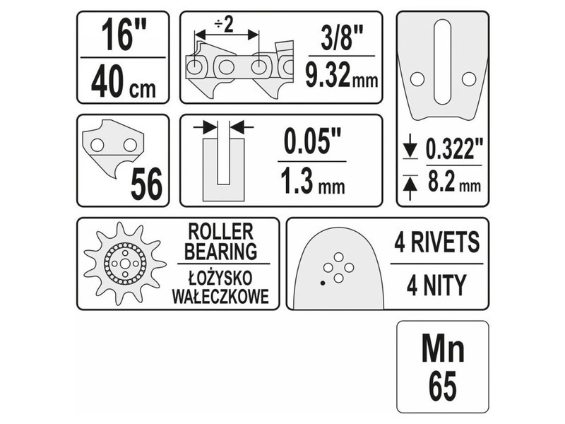 A vezetőket a YATO YT-84963 vagy YT-84960 láncokkal javasolt használni. Más gyártók láncaival is használhatóak.