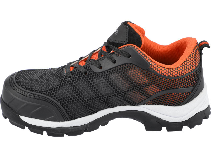 A cipők nem tartalmaznak fémet. Mind a talpbetét, mind a talp rugalmas, és ellentétben a hagyományos PU talpú és acélbetétes cipőkkel, nem korlátozzák a lábfej hajlítását. A termoplatisztikus KPU szár nemcsak sportos megjelenést kölcsönöz, hanem elsősorban nagy ellenállást nyújt a szakadás és kopás ellen. A hálós szerkezet a bélés anyagával kombinálva biztosítja a szellőzést és a magas kényelmet hosszú munkaidő alatt.