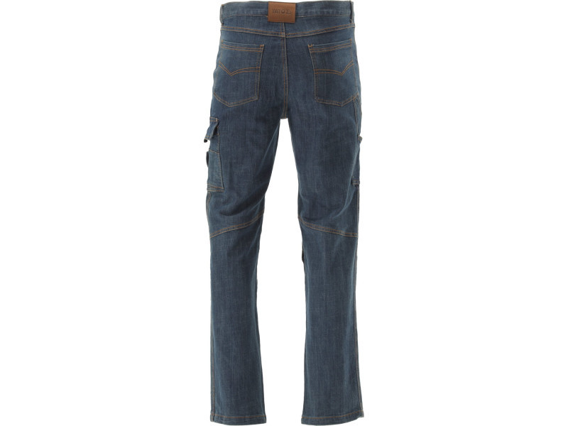 Összeszerelhető munkanadrág a MARA termékcsaládból, elasztánnal, sztreccs farmerből. Tíz zseb, köztük egy multifunkciós zseb a bal lábszáron. Térdnyílások a térdeken a térdvédők számára. Számos varrás és szegecs erősíti a szövetvarratokat a legérzékenyebb helyeken.