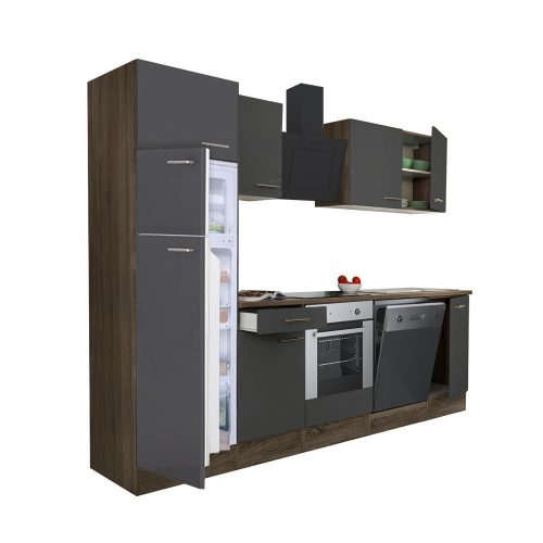 Yorki 280 konyhabútor yorki tölgy korpusz,selyemfényű antracit front alsó sütős elemmel felülfagyasztós hűtős szekrénnyel